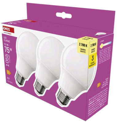 Emos Led žárovka Classic A60 / E27 / 9,5 W (75 W) / 1055 lm / teplá bílá