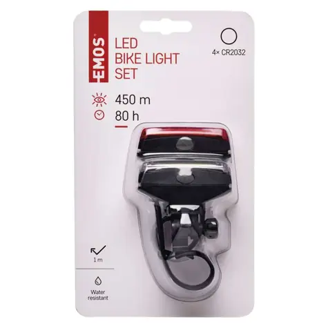 EMOS P3920 přední + zadní LED cyklosvítilna / 2x 1W COB LED / IPX3 / baterie typu CR2032