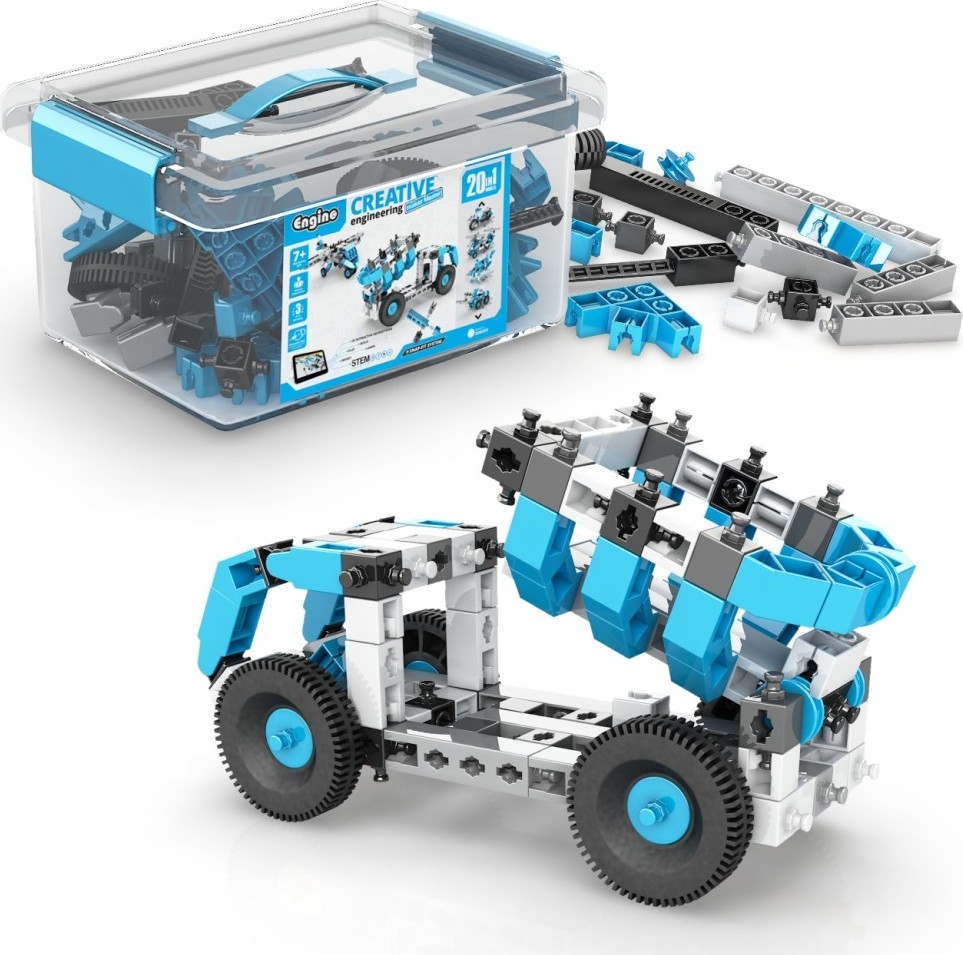 Stavebnice Engino Box představuje ideální kombinaci více dílků a úložného prostoru v jednom. Dle přiloženého návodu a mobilní aplikace krok po kroku snadno vytvoříte 20 různých modelů od zvířátek po dopravní prostředky. Interaktivní aplikace Engino kidCAD® zobrazí modely ve 3D, které si můžete libovolně otáčet, prohlížet a upravovat. Kompatibilní s ostatními druhy stavebnic Engino®. Vhodné od 7 let, vyrobeno na Kypru EU.
