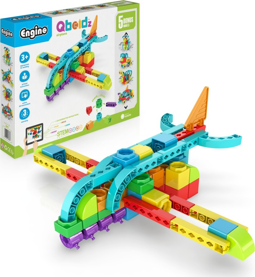 Stavebnice Engino Qboidz Letadlo 5 modelů je navržena speciálně pro děti od tří let a nabízí pět různých variant sestavení, které rozvíjejí kreativitu a motorické dovednosti nejmenších objevitelů. Díky jednoduchému systému zacvakávání dílků si děti snadno a rychle poskládají model letadla, ale také dalších barevných postaviček, vozidel, zvířátek nebo autíčka. Stavebnice je vyrobena z kvalitního plastu v pestrých barevných kombinacích, které přitahují pozornost a podněcují dětskou fantazii. Součástí balení je nejen klasický tištěný návod, ale i mobilní aplikace Engino kidCAD®, která umožňuje interaktivní 3D prohlížení modelů. Díky tomu si děti mohou modely otáčet, prohlížet ze všech stran a dokonce i upravovat podle své vlastní představy. Tato inovativní funkce podporuje učení a zlepšuje prostorovou představivost. Stavebnice je kompatibilní s ostatními sady Engino, což umožňuje ještě větší variabilitu a rozšiřování stavebních možností. Stavebnice obsahuje prvky různých tvarů a velikostí, například oblouky, kolečka nebo ploché destičky, které lze kombinovat do různých tvarů. Celá sada je zabalena v pevné krabici s jasným a přehledným designem, která zobrazuje všechny možné modely a základní informace o produktu. Výrobek je vyroben na Kypru a splňuje evropské bezpečnostní normy, což zaručuje bezpečnost a kvalitu pro malé děti. Tato stavebnice je ideální volbou pro rozvoj jemné motoriky, logického myšlení a zábavy v jednom.