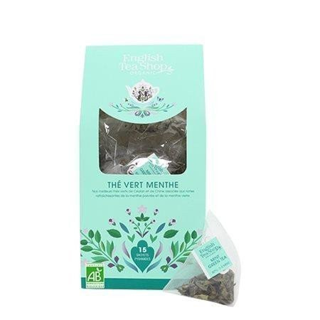 Zelený čaj s mátou v bio kvalitě od značky English Tea Shop má lehkou, čistou a osvěžující chuť. Díky obsahu teinu Vám čaj dodá energii a povzbudí tělo i mysl. Máta dodává zelenému čaje potřebné osvěžení a zároveň ochlazuje tělo. Zelený čaj prochází minimální oxidací, tudíž má vysoký podíl minerální látek. Čaj je vhodný pokud chcete udržet svoji váhu . Navíc zelený čaj obsahuje antioxidanty. Máta se používala již ve starověkém Egyptě a v Číně. Díky obsahu mentol a menthonu je máta ideální po jídlem, jelikož působí na trávicí ústrojí a proti stresu. Navíc je přírodním afrodiziakem. Složení: zelený čaj (82%)*, máta peprná (8%)*, máta klasnatá (6%)*, přírodní příchuť (4%) *Bio Hmotnost: 30 g Balení obsahuje 15 pyramidek
