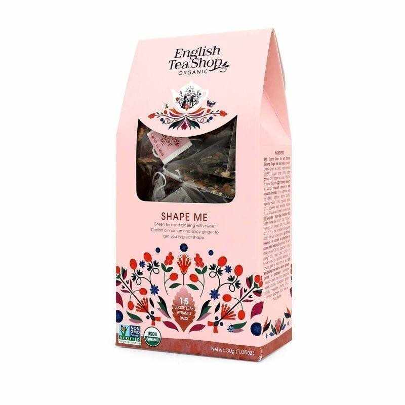 Sada čajů Tvaruj mě od značky English Tea Shop obsahuje kvalitní zelený čaj a byliny v bio kvalitě. Díky obsahu zeleného čaje, skořice, zázvoru a acai podporuje zachování optimální tělesné hmotnosti a detoxikuje tělo. Zelený čaj v bio kvalitě má jemnou a osvěžující chuť. Zelený čaj prochází minimální oxidací, tudíž má vysoký podíl minerální látek. Čaj je vhodný pokud chcete udržet svoji váhu a přispívá k ochraně buněk před oxidačním stresem. Navíc zelený čaj obsahuje antioxidanty, které brání předčasnému stárnutí. Skořice má prohřívací účinky a podporuje regeneraci pokožky. Zázvor má typickou, příjemněštiplavou chuť. Ženšen vás hezky povzbudí. Acai je superpotravina jelikož je silný antioxidantem a podporuje hubnutí.Složení: zelený čaj (54%)*, skořice (23%)*, zázvor (13%), ženšen (6%)*, ovoce acai (4%)*Hmotnost: 30 gBalení obsahuje 15 pyramidek