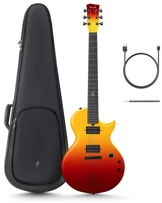 Elektrická smart kytara - materiál: uhlíková vlákna, Enya ES1Pro Smart Audio System, snímače: 2x Enya Custom Dual Coil Pickup, vestavěná baterie 2600 mAh, reproduktor: 10 W, příslušenství (gig bag, nabíjecí kabel, klíč), barva: Volcano Red
