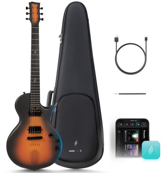 Inteligentní elektrická kytara, Jack Thammarat Signature Model, ENYA Custom Dual Coil Pickup, LES PAUL styl kobylka, taška + klíč + nabíjecí kabel