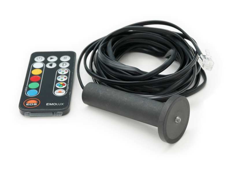 IR přijímač se samostatným bezdrátovým dálkovým ovládáním pro ovládání barevného světla a hudby přímo v kabině sauny. Určeno pro modul barevného světla SBM-FL a zvukový modul SBM-S. Dálkové ovládání obsahuje baterii. Vyberte požadovanou barvu, přepněte skladbu nebo upravte hlasitost hudby, aniž byste opustili saunu.