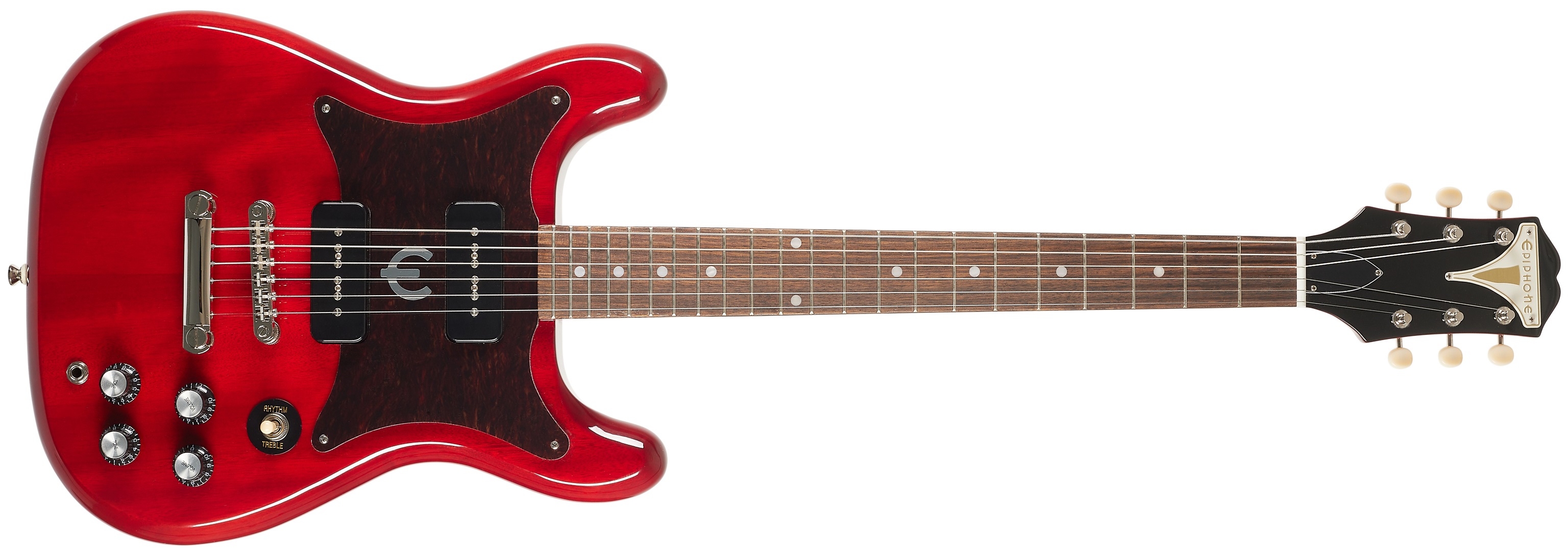 Elektrická kytara Elektrické kytary Epiphone Wilshere představují výlet do historie značky Epiphone, konkrétně do konce 50. let, kdy byly muzikantské veřejnosti představeny tři modely elektrických kytar s masivním tělem (Crestwood, Wilshire, Coronet). Symetrické tělo kytary v double-cut designu je zhotoveno z mahagonu. K rovněž mahagonovému krku je přilepen hmatník z fíkovníku osazený dvaadvaceti pražci velikosti Medium Jumbo. Orientaci na hmatníku usnadňují poziční tečky. Dva snímače P-90 v soapbar designu