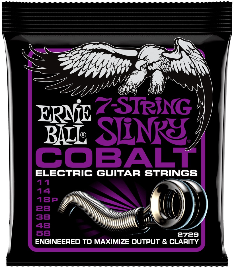 Struny pro sedmistrunnou elektrickou kytaru Struny pro elektrické kytary značky Ernie Ball z řady Cobalt Slinky byly vyvinuty tak, aby maximalizovaly hlasitost a čistotu zvuku, pročež využívají ty nejmodernější materiály a technologie výroby. Jsou typické velkým dynamickým rozsahem, velkým množstvím vyšších harmonických tónů, silnějšími basy a čistými, průraznými výškami. Jejich kouzlo spočívá ve využití kobaltu, který lépe pracuje s magnetickým polem snímačů a nabízí tak p