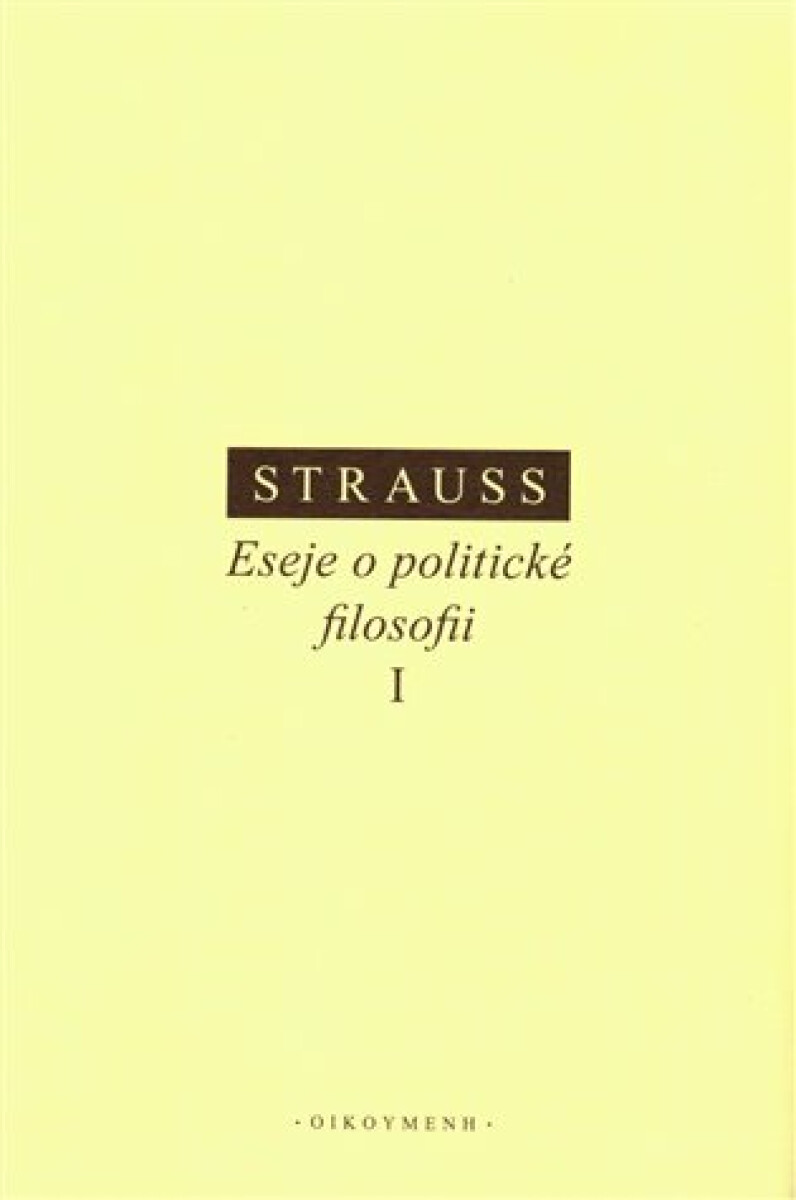 První díl dvousvazkového výboru nejvýznamnějších esejů L. Strausse, tvůrce svébytného pojetí politické filosofie a zakladatele vlivné školy politického myšlení. Výbor je koncipován tak, aby čtenáře seznámil s oběma pilíři Straussovy koncepce, v níž systematická zkoumání jsou vždy opřena o výsledky bádání v oblasti dějin politického myšlení. První svazek obsahuje texty zkoumající pojmy politické filosofie, modernity, dějin a přirozeného zákona.