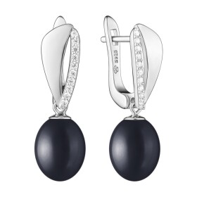 Stříbrné náušnice s černou perlou a zirkony, stříbro 925/1000, Černá