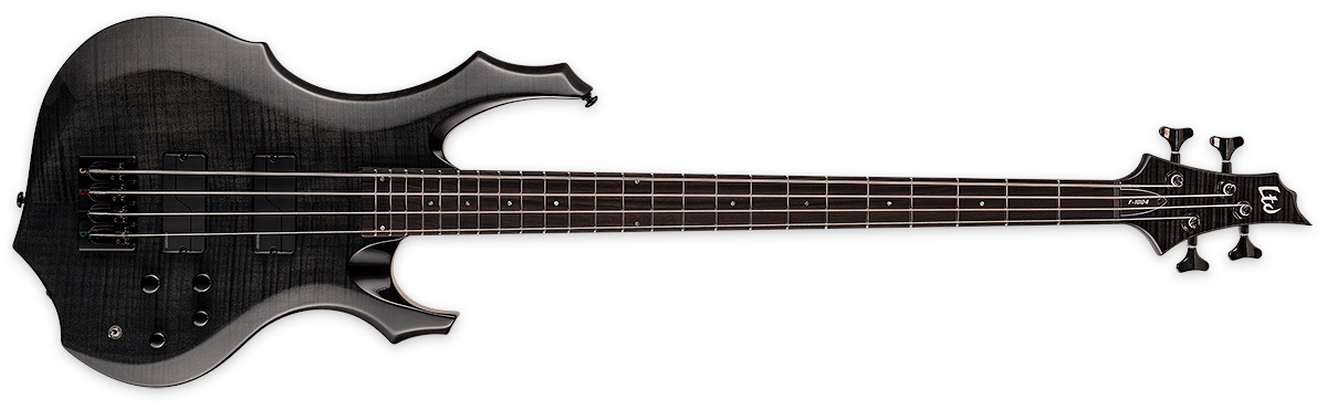 Elektrická baskytara LTD F-1004 je čtyřstrunná elektrická baskytara, která svým agresivním designem a moderními prvky osloví hráče extrémních hudebních stylů. Tělo z mahagonu s topem z fládrovaného javoru v elegantním provedení nejen skvěle vypadá, ale také poskytuje bohatý a průrazný zvuk. Konstrukce neck-thru-body spolu s pětatřicetipalcovou menzurou a sedmidílným krkem z javoru a purpleheart zajišťuje maximální stabilitu, sustain a pohodlný přístup k vyšším polohám. O zvukovou variabilitu se starají sním