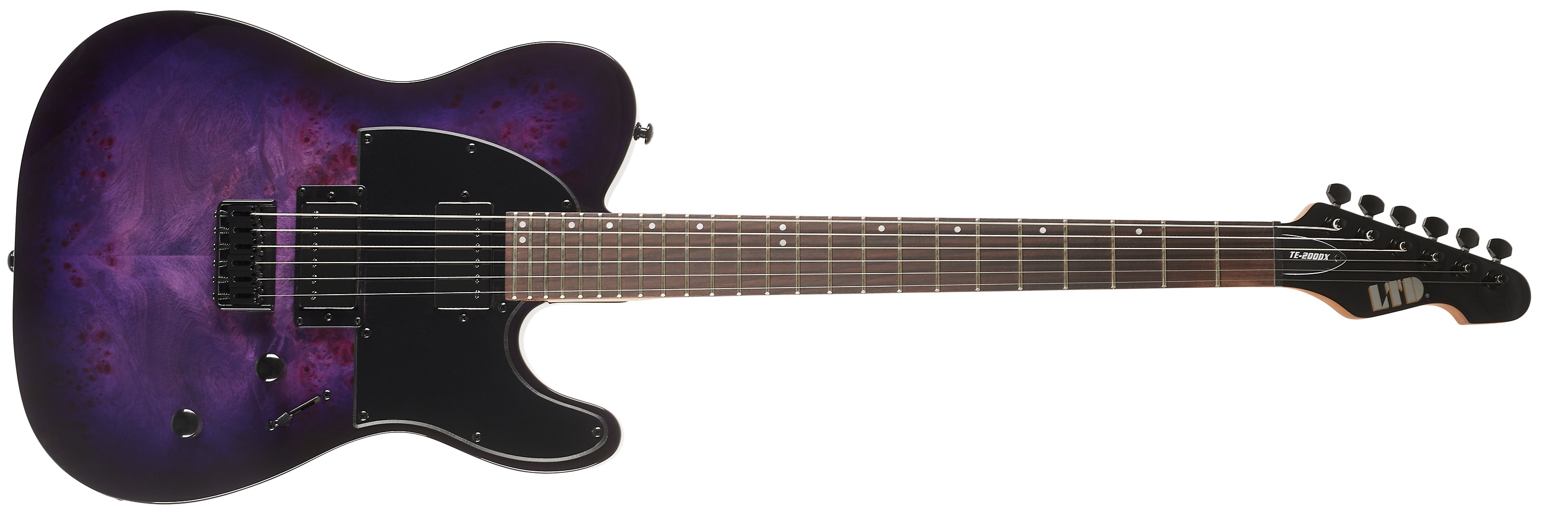 Elektrická kytara Elektrické kytary ESP LTD TE 200/201 jsou kvalitně zpracované nástroje v klasickém single-cut T designu, které nabízí všechny důležité prvky řady TE za cenu dostupnou širokému okruhu zájemců včetně mladých začínajících hráčů. Topolové tělo modelu TE-200DX PURPLE BURST zdobí efektní vrchní dýha z kořenice topolu (poplar burl). K přišroubovanému krku z pečeného javoru (roasted maple) je přilepen palisandrový hmatník osazený čtyřiadvaceti pražci velikosti Extra Jumbo. Orientaci na hmatníku us