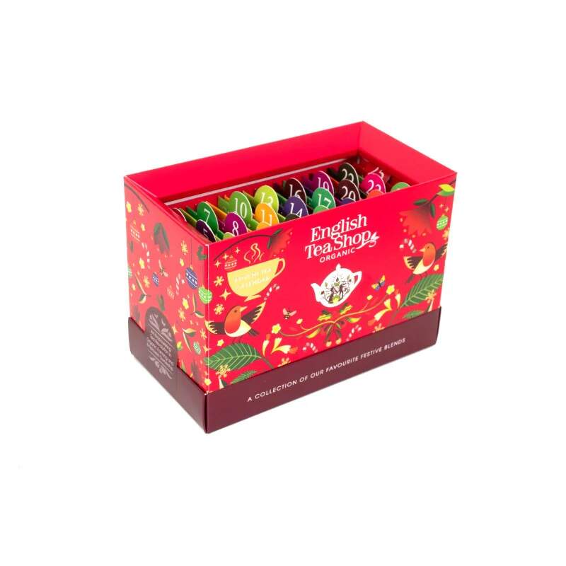 Luxusní čajový adventní kalendář. Darujte letos nový adventní kalendář s 25 sáčky těch nejlepších čajů, bylinkových a ovocných směsí se spoustou koření. Bílý Čaj, Kokos & Passion Fruit Složení: bílý čaj bio (51%), citronová tráva bio (16.5%), kakao bio (9%), pražený kokos bio (8%), lékořice bio (8%), přírodní příchuť passion fruit (3%), bio příchuť kokosu (2%), příchuť manga bio (2%), bio květy passion fruit (0.5%). Obsahuje lékořici. Čokoláda, Rooibos a Vanilka Složení: rooibos bio (72,5%), kousky kakaa bio (26%), přírodní příchuť vanilky (1%), vanilkový lusk bio (0.25%). Bílý Čaj a Tropické Ovoce Složení: bílý čaj bio (59%), citronová tráva bio (21%), lékořice bio (7%), ibišek bio (7%), příchuť manga bio (1.5%), přírodní příchuť passion fruit (1.5%), přírodní příchuť ananasu (1.5%), přírodní příchuť banánu (0.5%), kousky manga bio (0.5%), soursop kousky bio (0.5%). Obsahuje lékořici. Máta a Černý Čaj Složení: černý čaj bio (82%), máta peprná bio (8%), máta klasnatá bio (6%), příchuť máty bio (4%). Oživení Složení: bílý čaj bio (36%), moringa bio (19%), skořice bio (12%), šípek bio (10%), citronová tráva bio (9%), máta klasnatá bio (8%), kopřivy bio (5%), ženšen bio (1%). Pro více energie Složení: máta klasnatá bio (34%), máta peprná bio (20%), listy ostružiníku bio (12%), rooibos bio (8%), listy kopřivy bio (7%), kořen zázvoru bio (6%), citronová tráva bio (5%), skořice bio (5%), bezový květ bio (2%), ženšen bio (1%). Super Ovocný čaj Složení: ibišek bio (69%), rooibos bio (19%), máta klasnatá bio (4%), přírodní příchuť jahod (3%), přírodní příchuť malin (2%), sladké listy ostružiníku bio (1%), červená řepa bio (0.8%), maliny bio (0.5%), jahody bio (0.5%), borůvky bio (0.2%). Skořice, Moringa & Zázvor Složení: skořice bio (61%), moringa bio (26%), zázvor bio (13%). Mocná Matcha Složení: zelený čaj bio (45%), pražená rýže bio (10%), kakao bio (16%), skořice bio (12%), matcha bio (6%), pražený kokos bio (6%), příchuť kokosu bio (5%). Kafe a kakao Složení: černý čaj bio (54%), káva bio (24%), kakao bio (10%), kousky skořice bio (7.5%), příchuť vanilky bio (2%), přírodní příchuť kokosu (2%), světlice barvířská bio (0.5%). Silná Broskev Složení: ibišek bio (55%), šípek bio (20%), citronová kůra bio (5%), citronová tráva bio (5%), skořice bio (5%), jablka bio ( 5%), přírodní příchuť broskve (4%), přírodní příchuť passion fruit (1%). Sezonní Siesta Složení: citronová tráva bio (38%), skořice bio (25%), zázvor bio (12%), garcinia bio (10%), ibišek bio (7%), citronová kůra bio (3%), příchuť citronu bio (3%), přírodní příchuť zázvoru (2%). Černý čaj a Tropické Ovoce Složení: černý čaj bio (54%), citronová tráva bio (20%), kakao bio (10%), pražený kokos bio (9%), příchuť manga bio (5%), příchuť kokosu bio (2%).