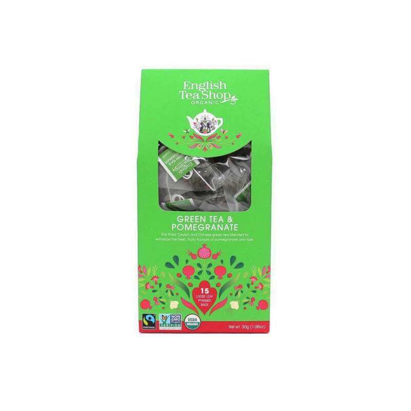 Katedrála Zelený čaj s granátovým jablkem 15 pyramidek Zelený čaj s granátovým jablkem v bio kvalitě vás překvapí lehkou, ovocnou a čistou chutí. Díky obsahu teinu Vám čaj dodá energii a povzbudí tělo i mysl. Zelený čaj prochází minimální oxidací, tudíž má vysoký podíl minerální látek. Čaj je vhodný pokud chcete udržet svoji váhu. Navíc zelený čaj obsahuje antioxidanty. Granátové jablko má lehce nahořklou ovocnou chuť. V starověkém Egyptě bylo granátové jablko považováno za elixír mládí. Složení: zelený čaj**, okvětní plátky růže*, kousky granátového jablka*, přírodní příchuť *Bio **Bio a Fairtrade Hmotnost: 30 g Balení obsahuje 15 pyramidek English Tea Shop nabízí čistě přírodní čaje bez syntetických příchutí a barviv a nese certifikáty bio, fairtrade a veškerý obalový materiál i samotné čajové sáčky jsou biologicky odbouratelné a recyklovatelné. Jejich výroba je zcela bezuhlíková. Země původu: Srí Lanka
