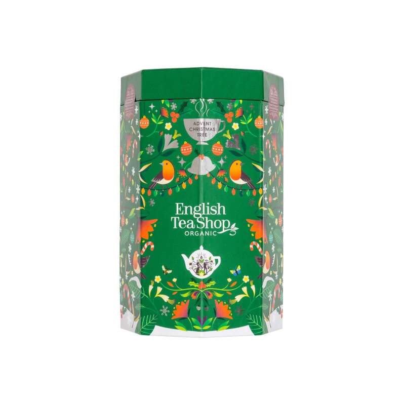 Adventní kalendář v té nejlepší možné formě. Malý stromek plný 13 různých kouzelných čajových chutí. SLOŽENÍ: Ceylonský černý čaj - černý čaj bio (100%). Kurkuma Zázvor & Citronová tráva - zázvor (30%)*, kurkuma (30%)*, citronová tráva (14%)*, lékořice (7%)*, hřebíček (6%)*, citronová kůra (4%)*, kardamom (4%)*, černý pepř (3%)*, semínka kmínu (2%). Obsahuje lékořici Sencha Zelený Čaj - sencha čaj bio (100%). Jablko, Šípek & Skořice - ibišek bio (40%), šípek bio (24%), skořice bio (12%), lékořice bio (10%), jablka bio (5%), máta peprná bio (4%), přírodní příchuť jahod (2%), přírodní příchuť třešní (1.5%), přírodní příchuť malin (1.5%). Obsahuje lékořici. Brusinky, Ibišek & Šípek - ibišek bio (33%), šípek bio (26%), citronová tráva bio (25.5%), zázvor bio (6%), garcinia bio (4%), přírodní příchuť brusinek (3%), přírodní příchuť lychee (1.5%), brusinky bio (1%). Cejlonská Skořice - skořice (90%)*, zázvor (6%),* kardamon (4%) Mate, Kakao & Kokos - yerba mate bio (50%), kakao bio (26%), zázvor bio (12%), kokos bio (10%), lékořice bio (2%). Obsahuje lékořici a kokos. Citronová tráva, Citrusy & Zázvor - citronová tráva (49%)*, pomerančová kůra (24%)*, zázvor (22%)*, limetkový olej (2.5%)*, mandarinový olej (2.5%) Kakao, Skořice & Zázvor - skořice bio (45%), kakao bio (32%), fenykl bio (15%), zázvor bio (8%). Sváteční povzbuzení - šípek bio (34%), ibišek bio (22%), listy máty peprné bio (11%), jablka bio (11%), lékořice bio (4%), skořice bio (12%), přírodní příchuť manga (2.5%), přírodní příchuť skořice (1.5%), přírodní příchuť vanilky (1%,) okvětní plátky růže bio (1%). Obsahuje lékořici Zimní rovnováha - listy máty (30.5%)*, máta klasnatá (18%)*, pískavice (12%)*, bezový květ (9%)*, kurkuma (9%)*, citronová kůra (7%)*, fenykl (7%)*, přírodní příchuť (4.5%), rozmarýn (3%) Zimní prohřátí - rooibos (60.5%)*, zázvor (15%)*, kakao (10.5%)*, anýz (5%)*, muškátový květ (4%)*, přírodní příchuť kakaa (5%) Tropická Citronová Tráva - citronová tráva bio (30%), listy máty bio (20%), ibišek bio (20%), šípek bio (11%), heřmánek bio (4%), jablka bio (10%), přírodní příchuť manga (2.5%), přírodní příchuť broskve (1.5%), přírodní příchuť passion fruit (1%).