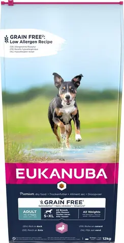 Eukanuba Grain Free Adult All breeds Duck - dry dog food 12 kg / granule pro psy / pro dospělého psa všech plemen