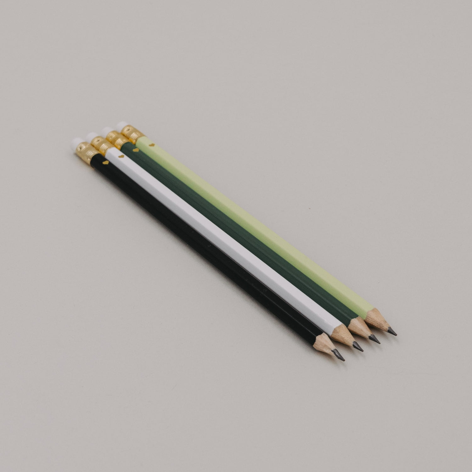 Sada obsahuje čtyři tužky ve dvou různých odstínech zelené , bílou a černou tužku. Stylově obohatí váš stojánek na tužky a pracovní stůl.