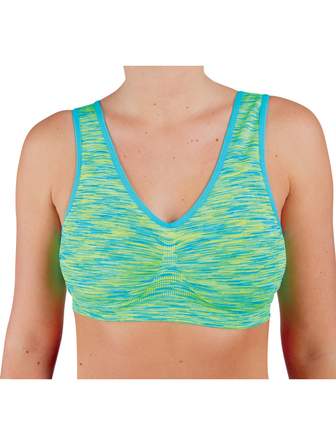 Dámská podprsenka na nenáročné sportovní aktivity nebo domácí nošení. V bezkosticovém provedení s vyztuženými košíčky a širokými ramínky. podprsenka je ze směsi polyesteru a elastanu, který jí dodává pružnost vyztužené košíčky bez kostic široká ramínka ramínka bez délkové regulace obléká se přes hlavu ideální na sport i volný čas barva zelený melír Tip: Prohlédněte si také nabídku legín a termoprádla z naší nabídky.