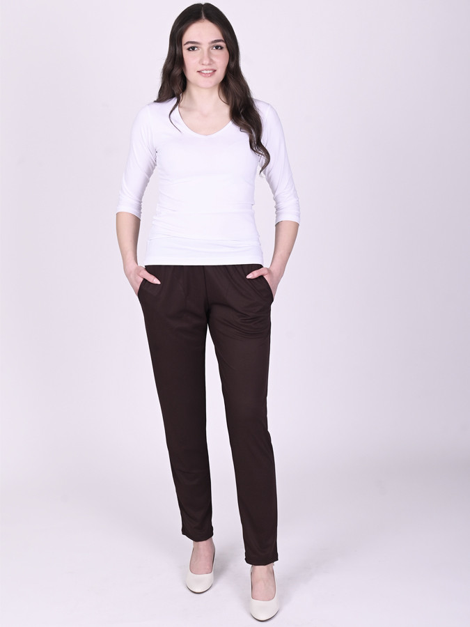 Tyto elegantní dámské kalhoty TABO si zamilujete od prvního obléknutí. Jsou vyrobeny ze směsi viskózy a elastanu, díky čemu jsou příjemně chladivé a nemačkavé. Určitě oceníte i boční kapsy s decentním prošitím, které dodává kalhotám šmrnc. Pro pohodlné nošení mají v pase všitou pružnou gumu. Užší střih nohavic působí elegantně a tak v kalhotách můžete vyrazit do města na kávu nebo i na pracovní schůzku. Materiál: 65% rayon / 27% nylon / 8% elastan užší střih nohavic pružná guma v pase dvě boční kapsy Tip: Ke kalhotám TABO doporučujeme tričko nebo halenku z naší nabídky.