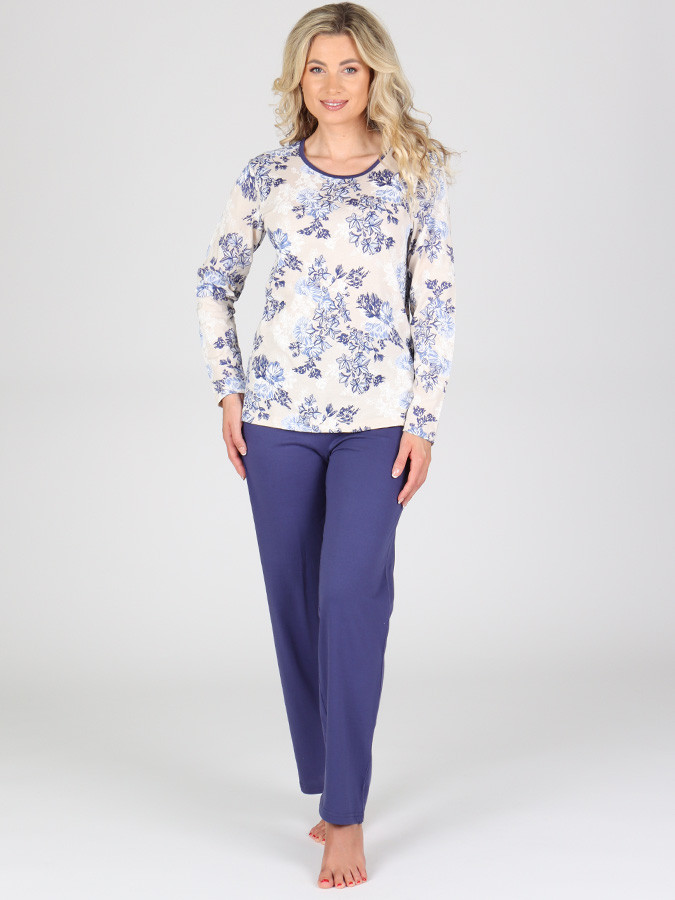 Komplet dámský s viskózou s ozdobami a elastickými kalhotami béžový UNI