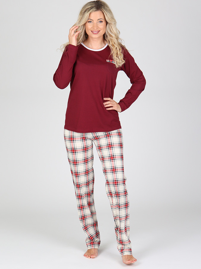 Dámské dlouhé pyžamo P TRINITY je perfektní volbou pro lenošení a klidný spánek. dámské dvoudílné pyžamo je vyrobené ze 100% bavlny jednobarevné triko s dlouhým rukávem kulatý výstřih zakončený lemováním kalhoty s károvým potiskem v pase kalhot je pohodlná vyměnitelná elastická guma toto bavlněné dámské pyžamo můžete použít i jako pohodlný domácí oděv Tip: Prohlédněte si naši nabídku dámského spodního prádla