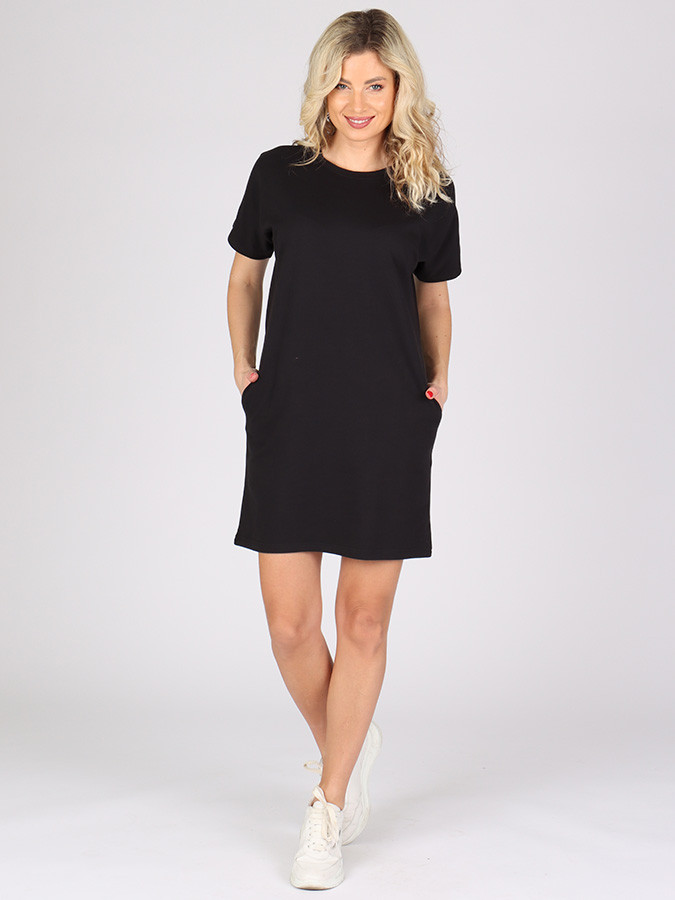 Dámy, máte rádi pohodlnou oversize módu? Pak jsou tyto dámské mikinové šaty RONIE právě pro Vás. Šaty jsou ušity z příjemného bavlněného úpletu s elastanem. Mají decentní kulatý výstřih, krátké rukávy a 2 boční kapsy. Jsou to ležérní dámské šaty na každý den. z bavlny v kombinaci s elastanem, díky kterému lépe drží tvar krátký rukáv krátké šaty mají v bočních švech praktické kapsy ideální do práce i na večírek zkombinujte šaty s barevným šátkem nebo páskem a uděláte z nich originál barva černá modelka je vysoká 173 cm a má velikost M celková délka S 90 cm, M 91 cm, L 92 cm, XL 93 cm, XXL 94 cm Tip: Prohlédněte si také nabídku dámského spodního prádla a punčoch.