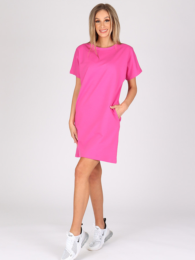 Dámy, máte rádi pohodlnou oversize módu? Pak jsou tyto dámské mikinové šaty RONIE právě pro Vás. Šaty jsou ušity z příjemného bavlněného úpletu s elastanem. Mají decentní kulatý výstřih, krátké rukávy a 2 boční kapsy. Jsou to ležérní dámské šaty na každý den. z bavlny v kombinaci s elastanem, díky kterému lépe drží tvar krátký rukáv krátké šaty mají v bočních švech praktické kapsy ideální do práce i na večírek zkombinujte šaty s barevným šátkem nebo páskem a uděláte z nich originál barva růžová modelka je vysoká 177 cm a má velikost M celková délka S 90 cm, M 91 cm, L 92 cm, XL 93 cm, XXL 94 cm Tip: Prohlédněte si také nabídku dámského spodního prádla a punčoch.