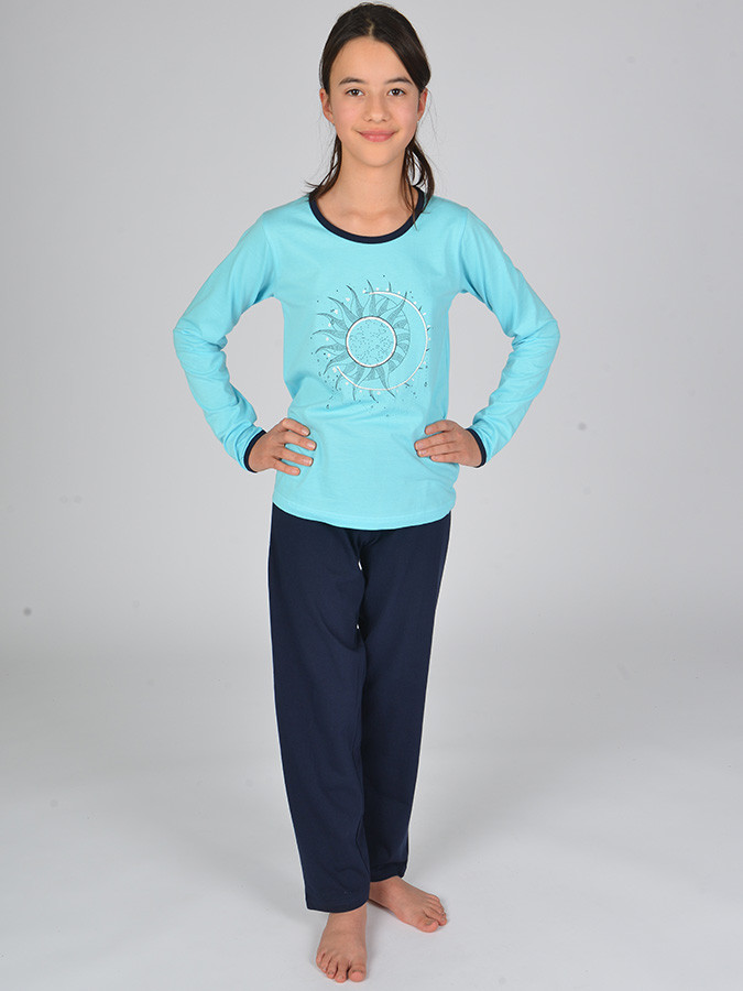Pro příjemný spánek a dobrou noc děti potřebují spaní jako v bavlnce. Dívčí pyžamo z příjemné bavlny se skládá z trika s potiskem a jednobarevných dlouhých pyžamových kalhot. ze 100% Bavlny, která poskytne Vaši dětem příjemný pocit a pohodlí při spánku triko má kulatý výstřih a dlouhé rukávy průkrčník, rukávy a triko jsou zakončené pružným nápletem triko s potiskem skvěle barevně ladí s jednobarevnými pyžamovými kalhotami pyžamové kalhoty mají v pase pohodlnou vyměnitelnou gumu, která zajistí vyšší komfort během nošení nohavice jsou zakončené pružným nápletem ve stejné barvě pyžamo je i jako pohodlný domácí oděv Tip: Na sport i pro zimní období doporučujeme Vašim dětem funkční prádlo - termoprádlo. Budou se v něm cítit komfortně.