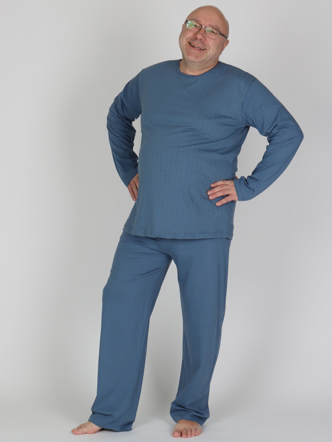 I pro pořádné chlapy máme pyžama! Pánské pyžamo P BIGSTER v nadměrných velikostech se skládá z trika s drobným potiskem a jednobarevných kalhot. ze 100% Bavlny, která Vám poskytne příjemný pocit a pohodlí při spánku triko má kulatý výstřih, dlouhé rukávy a celoplošný drobný potisk dlouhé pyžamové kalhoty jsou jednobarevné a mají v pase pohodlnou vyměnitelnou elastickou gumu bez manžet model je vysoký 183 cm a má velikost 3XL Tip: Prohlédněte si naši nabídku pánského spodního prádla.