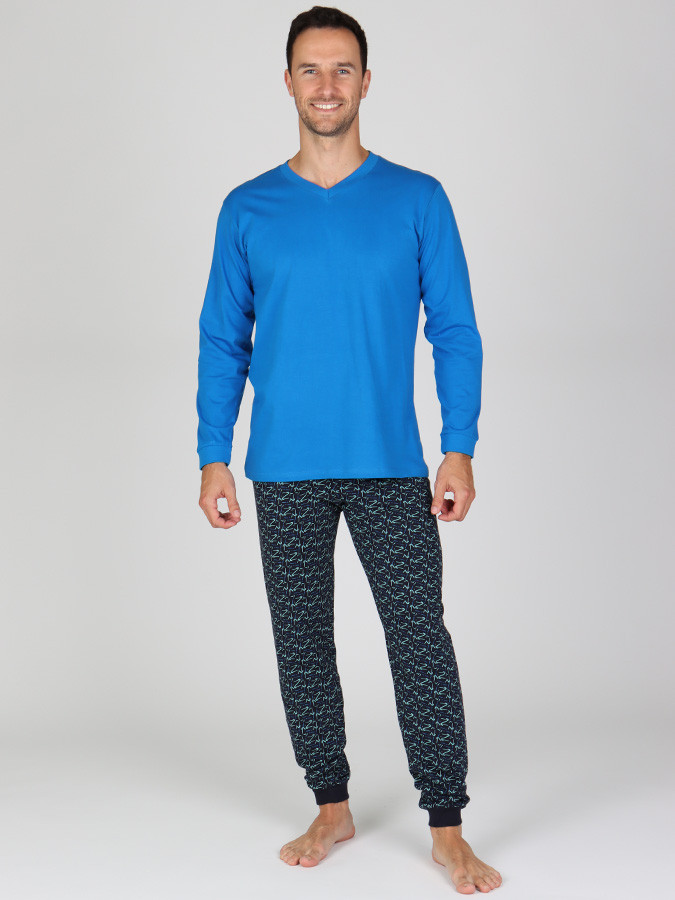 Pohodlné pánské pyžamo P KEFEUS z čisté bavlny je příjemné na tělo. Pyžamo se skládá z trika a kalhot s dlouhou nohavicí. Je ideální na chladnější roční období. ze 100% Bavlny, která Vám poskytne příjemný pocit a pohodlí při spánku triko má výstřih do V a dlouhé rukávy pyžamové kalhoty mají v pase pohodlnou vyměnitelnou elastickou gumu triko barevně ladí s kalhotami s jemným vzorem toto pánské pyžamo je ideální pro chladnější období model je vysoký 186 cm a má velikost L TIP: Prohlédněte si naši nabídku pánského spodního prádla