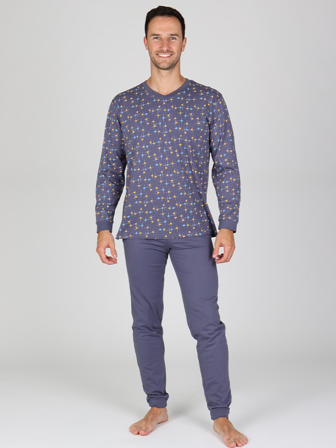 Pohodlné pánské pyžamo P ORFEUS z čisté bavlny je příjemné na tělo. Pyžamo se skládá z trika a kalhot s dlouhou nohavicí. Je ideální na chladnější roční období. ze 100% Bavlny, která Vám poskytne příjemný pocit a pohodlí při spánku triko má výstřih do V a dlouhé rukávy pyžamové kalhoty mají v pase pohodlnou vyměnitelnou elastickou gumu triko barevně ladí s kalhotami s jemným vzorem toto pánské pyžamo je ideální pro chladnější období model je vysoký 186 cm a má velikost L TIP: Prohlédněte si naši nabídku pánského spodního prádla