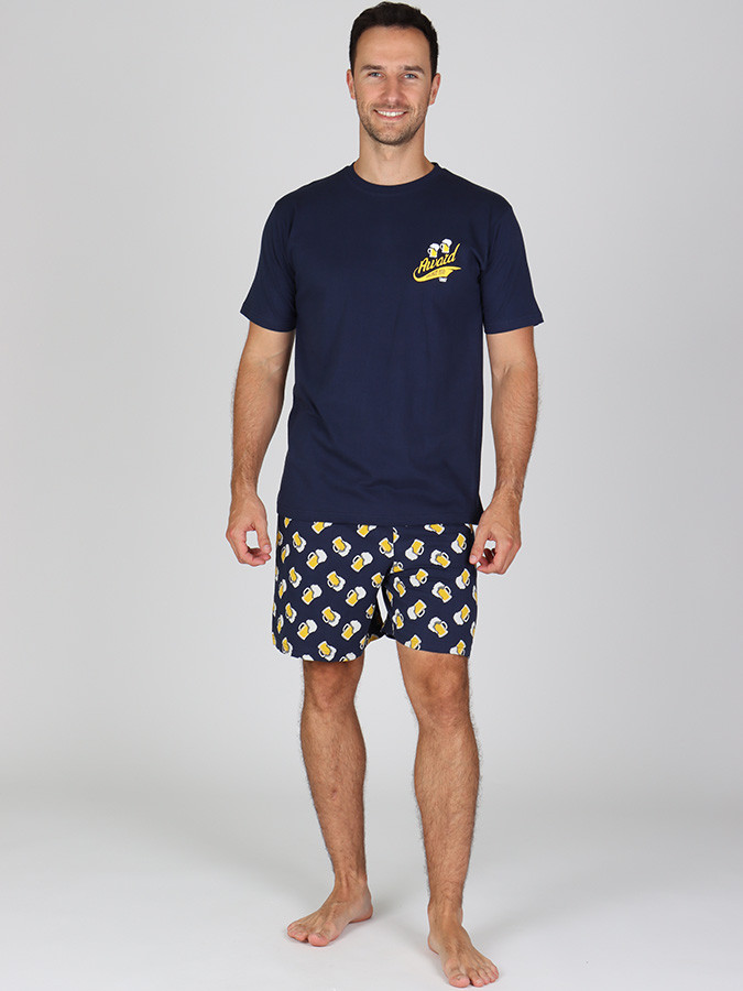 Pánské krátké pyžamo P LUCA si zamilují všichni milovníci piva. Pohodlné bavlněné pánské krátké pyžamo se skládá z trika s drobným potiskem a krátkých kalhot s potiskem. Toto pyžamo skvěle poslouží i jako dárek! ze 100% bavlny, která Vám poskytne příjemný pocit a pohodlí při spánku triko má kulatý výstřih a krátké rukávy originální potisk na tričku a kalhotách krátké pyžamové kalhoty mají v pase všitou elastickou gumu, která zajistí vyšší komfort během nošení model je vysoký 186 cm a má velikost L Tip: Prohlédněte si naši nabídku pánského spodního prádla.