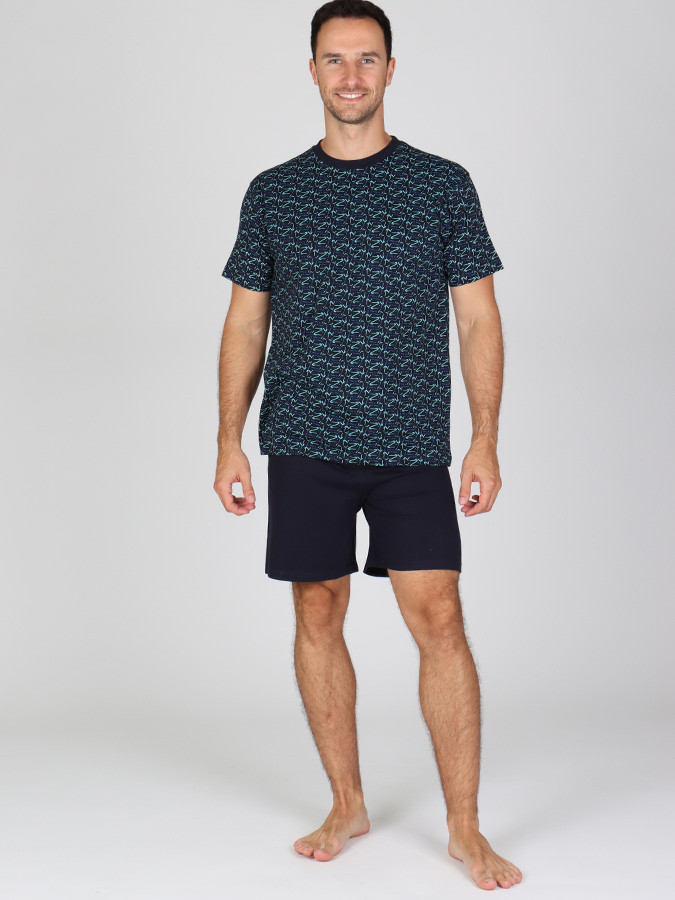 Pánské krátké pyžamo P RAVI si na spaní zamilujete. Pohodlné bavlněné pánské krátké pyžamo se skládá z trika s drobným potiskem a krátkých kalhot. Toto pyžamo skvěle poslouží i jako dárek! ze 100% Bavlny, která Vám poskytne příjemný pocit a pohodlí při spánku triko má kulatý výstřih a krátké rukávy originální potisk na tričku a krátké kalhoty krátké pyžamové kalhoty mají v pase všitou elastickou gumu, která zajistí vyšší komfort během nošení model je vysoký 186 cm a má velikost L Tip: Prohlédněte si naši nabídku pánského spodního prádla.