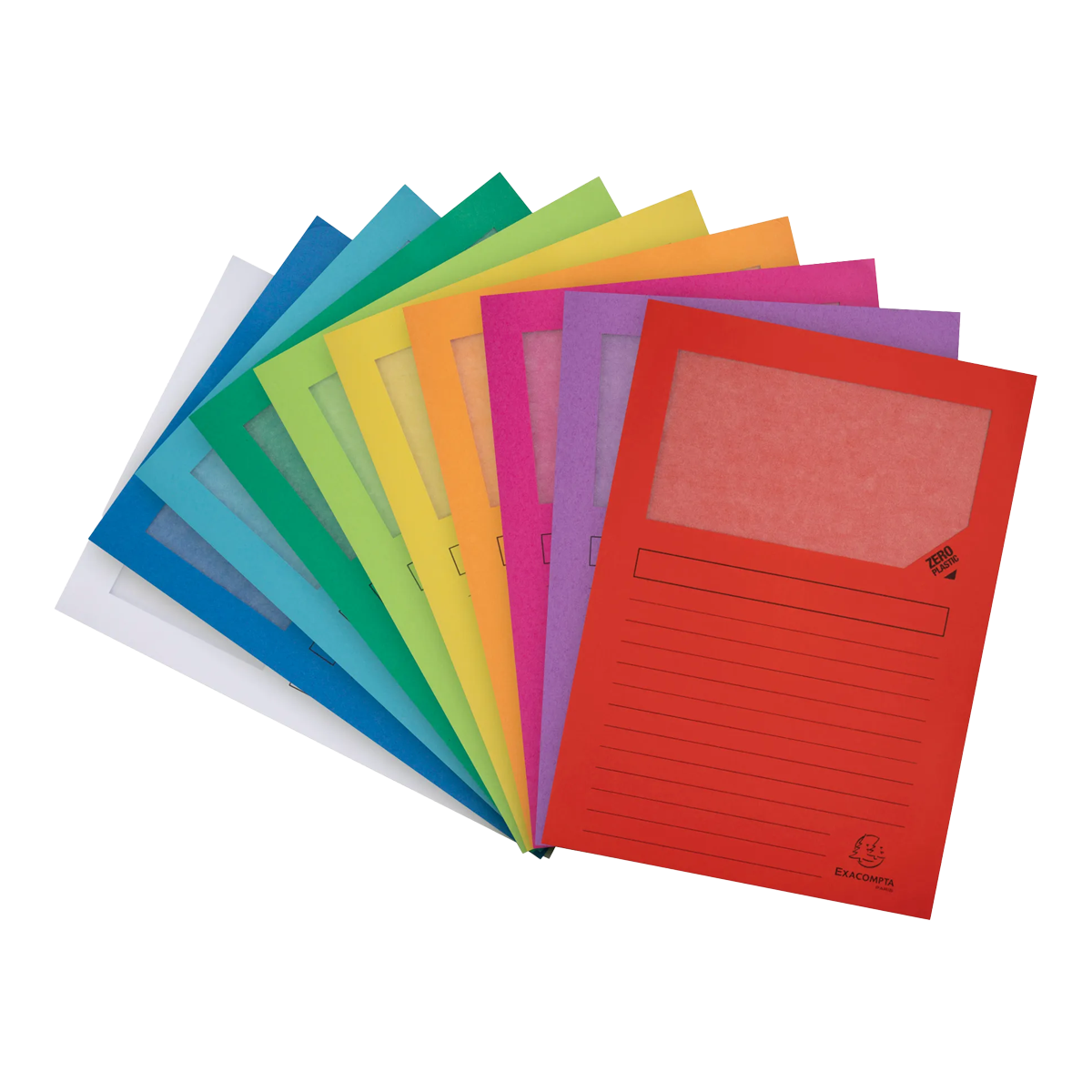 Zakládací obal s křídovým papírem na přední straně, který umožňuje náhled do založených dokumentů. Tvar L a mírné zkrácené rohy na přední straně pro snadnější zakládání dokumentů. Předtištěné linky na přední straně pro popis složek. Vhodné pro organizaci pracovního dne. Vyrobeno ze 100 % recyklovaného papíru, bez obsahu plastu.formát A4rozměry: 220 x 310 mm, rozměry okénka: 175 x 95 mmmateriál: 100% recyklovaný karton, 130 g/m2kapacita: 80 listů A4 (80 g)barva: mix zářivých barevpopisovatelnývyrobeno ve Franciiobsah balení: 10 ks
