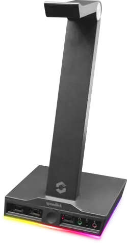 EXCELLO Illuminated Headset Stand černá / stojánek na sluchátka / 3x USB-A 2.0 / 2x 3.5mm Jack / RGB (SL-800910-BK)
