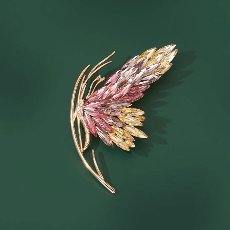 Vstupte do světa luxusu s naší exkluzivní broží Swarovski Elements Josepha. Tato brož v podobě motýla je dokonale provedena s ohledem na každý detail a přináší vám jedinečnou eleganci a šmrnc. Křídla motýla jsou vyrobená z krystalů Swarovski Elements ve tvaru Marquise. Tyto krystaly v tmavě růžové, fialové a zlaté barvě přinášejí ohromující lesk a oslnivou krásu. Každý krystal je pečlivě vybrán a umístěn s precizností, aby se vytvořil dokonalý design. Tato exkluzivní brož je skutečným uměleckým dílem, které okamžitě přitáhne pozornost a dodá vašemu outfitu jedinečný nádech luxusu. Je to ideální doplněk pro společenské akce, večírky nebo formální příležitosti, který vám zajistí pohledy obdivu.