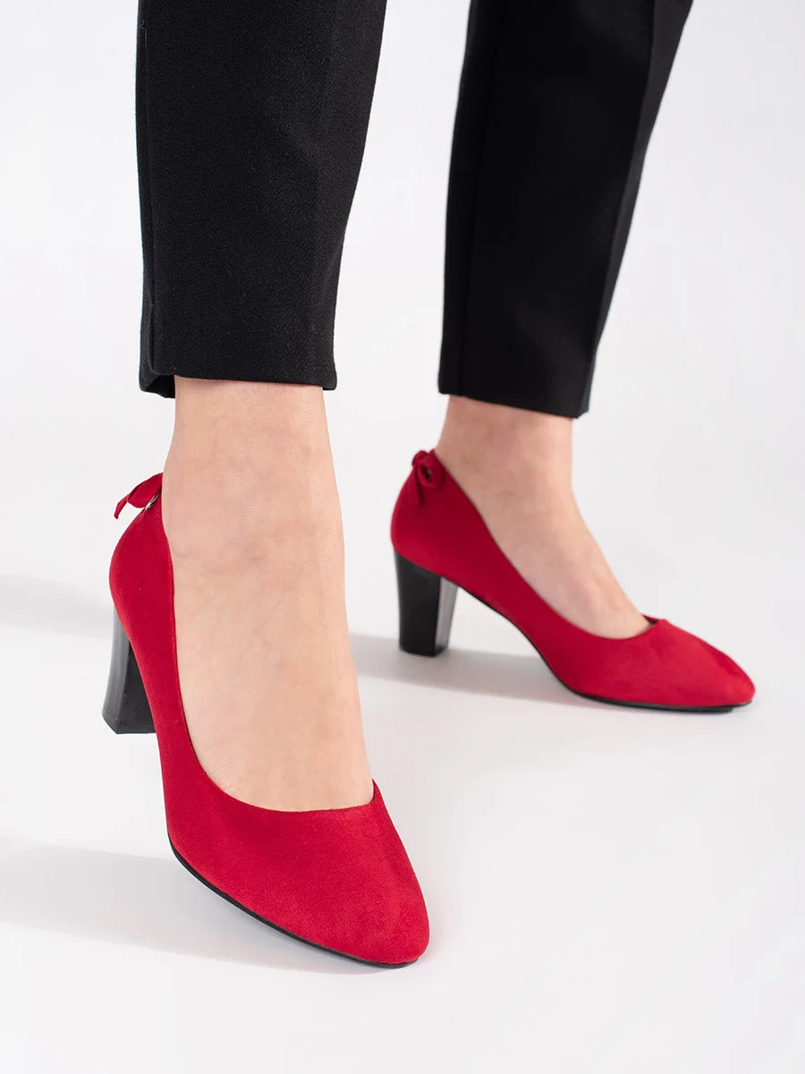 Exkluzívní dámské červené lodičky na širokém podpatku 38