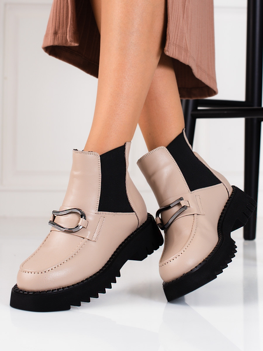 Exkluzívní kotníčkové boty dámské hnědé na plochém podpatku 36