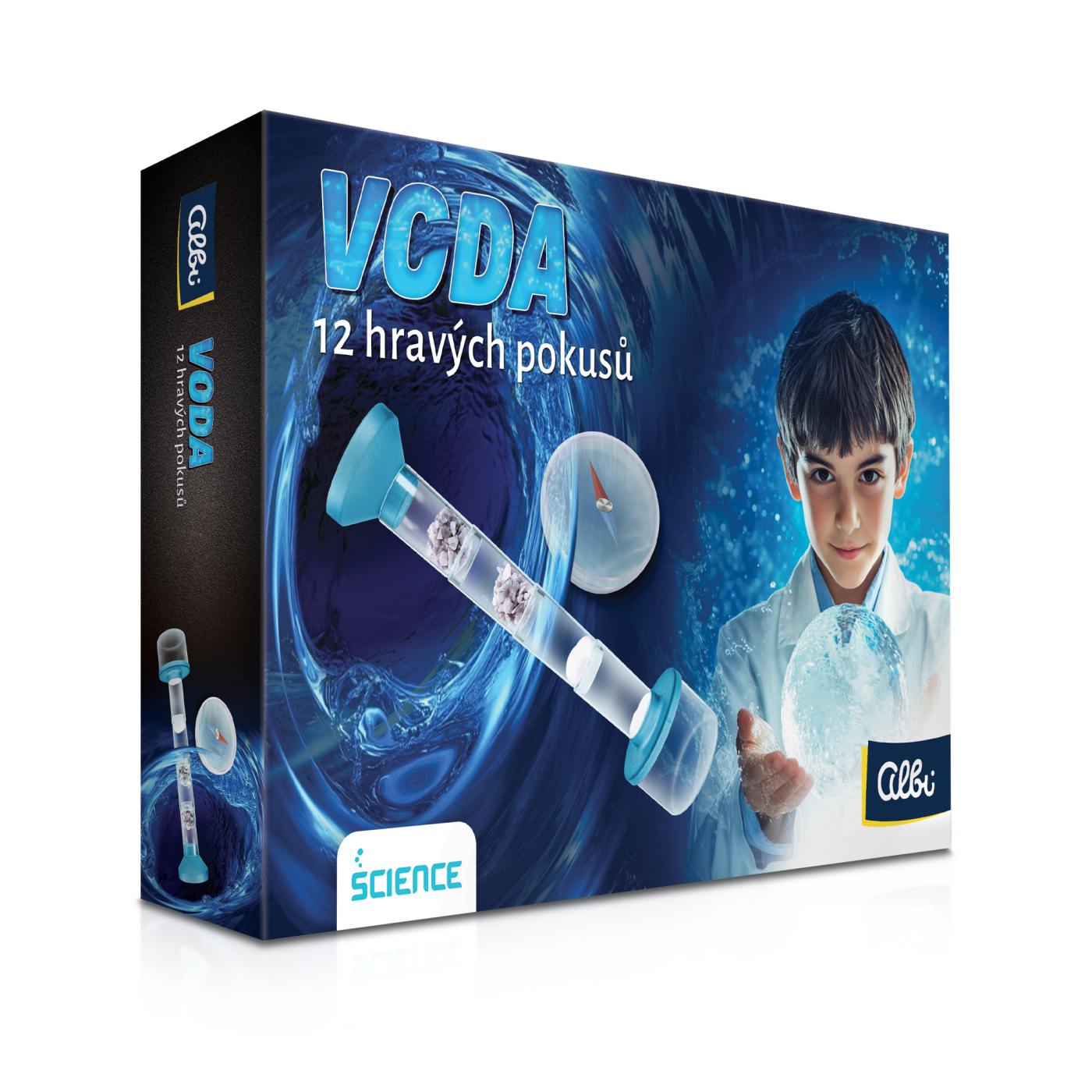 Sada pro dětské experimenty s vodou. Umožňuje zkoumat skupenství, tlak a filtraci vody. Rozvíjí logické myšlení a zvídavost. 12 pokusů a podrobný návod. Sada obsahuje: 4 plastové trubice, 1 plastový trychtýř, 1 plastový kryt, 1 plastový kelímek, 1 sáček oblázků, 1 sáček mramorových kamínků, 3 filtrační papíry, 1 houbičku, 2 zkumavky, 1 zátku s otvorem, 1 stojan na zkumavky, 2 brčka, 1 odměrný válec s otvory, 1 Petriho misku, 1 kompas do vody, 3 větrné lopatky ve tvaru košíčku, 1 držák větrných lopatek, 1 madlo větrných lopatek, 2 plastové kelímky, 2 odměrky, 1 pipetu, 1 bavlněný provázek, 1 lupu, 3 vatové kuličky, 1 bublifukovou hůlku, 1 míchací tyčinku, návod.