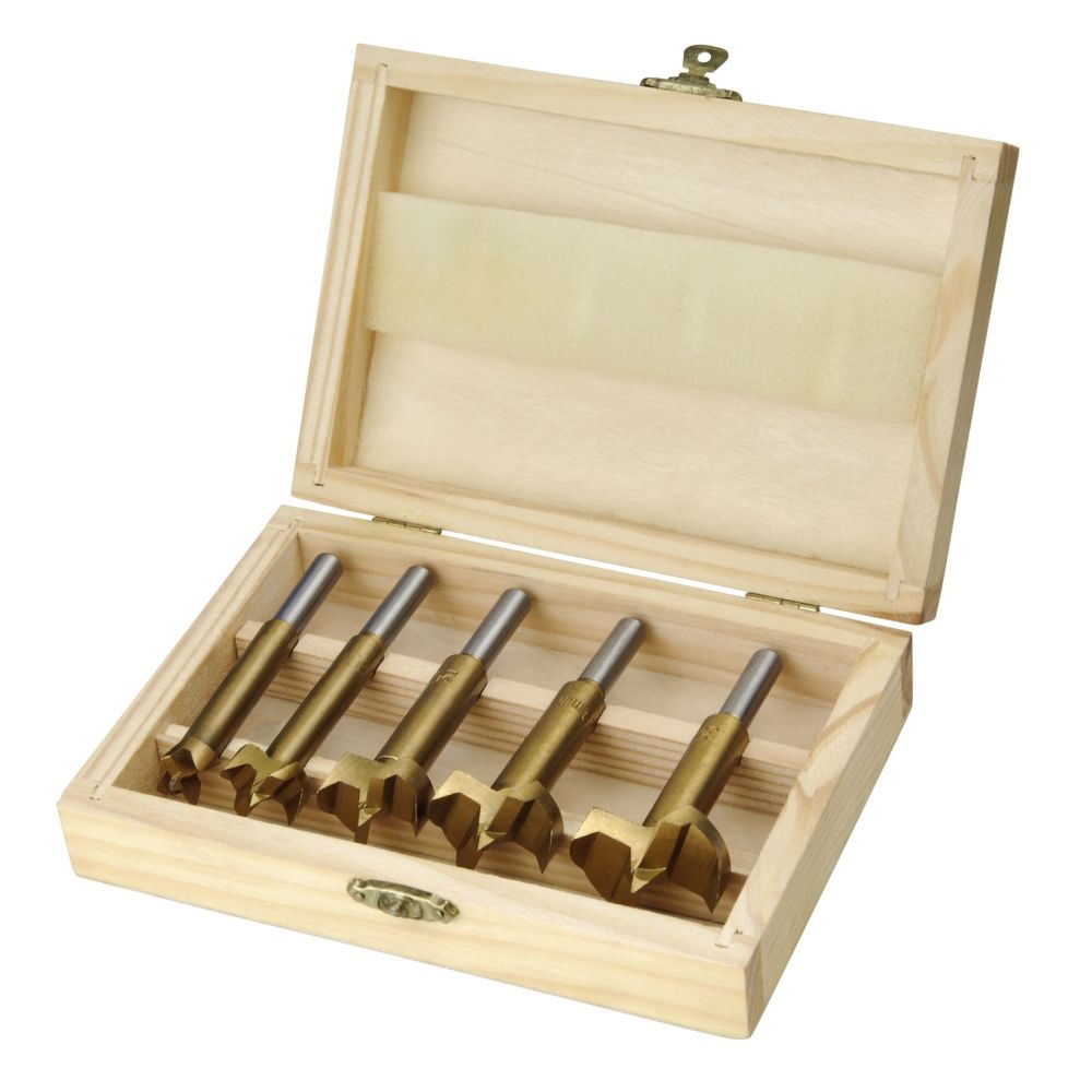 Praktická sada nejpoužívanějších rozměrů sukovníků v dřevěné kazetě. Sukovníky - čelní frézy jsou přesně broušeny pro dobrý řezný výkon a opatřeny titanovou povrchovou úpravou pro prodloužení životnosti. Vhodné jsou do přírodního dřeva, dřevotřísky a pod.. Průměr sukovníku:15 - 20 - 25 - 30 - 35 mmPrůměr stopky:8 - 9,5 mmBřity:broušené