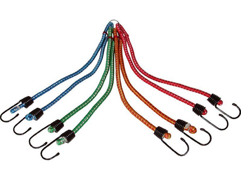 Elastické gumové popruhy opletené polyesterem a zakončené na obou koncích háky z ocelových poplastovaných drátů. Popruhy jsou svázané do tkz. pavouka – 8 jednotlivých ramen. Vhodné k uchycování zavazadel, kotvení nákladů apod..