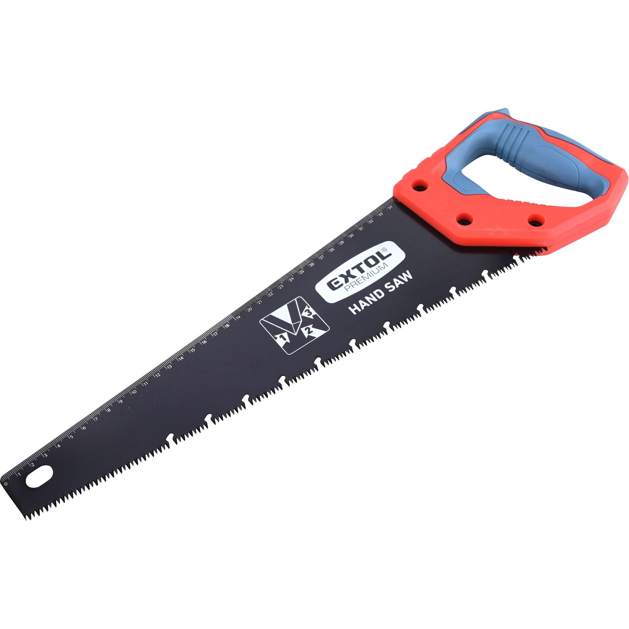 Ruční pilka pro jednoruční řezání dřeva. Pila je tvořena velmi pevným a stabilním listem pro maximální přenos síly na ozubené ostří. K pile je dodávám magnetický kryt ostří. Ostří se skládá z indukčně kalených, trojbroušených a tvrzených zubů. Tato kombinace zajišťuje rychlé a přesné řezání oběma směry. Pila je opatřena plastovou, ergonomicky tvarovanou rukojetí, měkčenou TPR gumou. Rukojeť má orientační označení úhlů 45° a 90°. Délka ostří: 400 mm Počet zubů: 9 na palec Hmotnost pily: 330 g