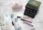 vysoce stálobarevný a neblednoucí, voděodolný, permanentní bez zápachu, bez kyselin, neutrální pH inkoustu pigmenty nejvyšší kvality 60 barev v pevném boxu špička B = špička štětce