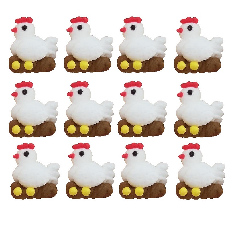 Domů Dům a zahrada Domácnost Doplňky do kuchyně Pečení Dekorace na dort Fagoš Cukrové ozdoby Slepička bílá 12 ks