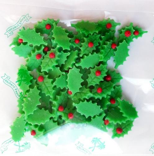 Cukrové ozdoby na vánoční zdobení cukroví, zákusků, dortů, dezertů. Balení obsahuje cca 46 ks. Rozměry cesmíny: cca 18 mm Složení: cukr, glukóz.sirup, suš.mléko, kokos, voda, mandlové aroma, vaječný bílek, konzer.E202, barviva E102*,E124*,,E133. *Tato barviva mohou nepříznivě ovlivňovat činnost a pozornost dětí. Výživové hodnoty: energetická hodnota 1790 KJ / 424 kcal, tuky 8,8g, z toho nasycené mastné kyseliny 8,3g, sacharidy 83,5g, z toho cukry 77,5 g, bílkoviny 1,6g, sůl 0,2g.