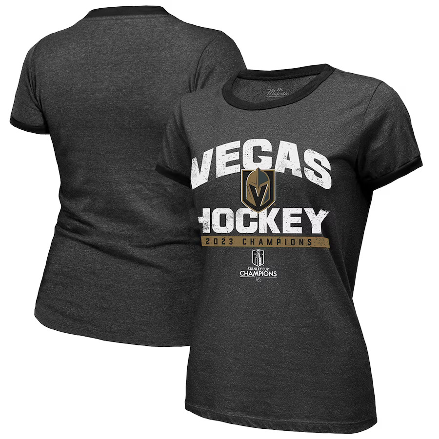 Fanatics Dámské tričko Vegas Golden Knights NHL 2023 Stanley Cup Champions Ringer Tri-Blend Velikost: S