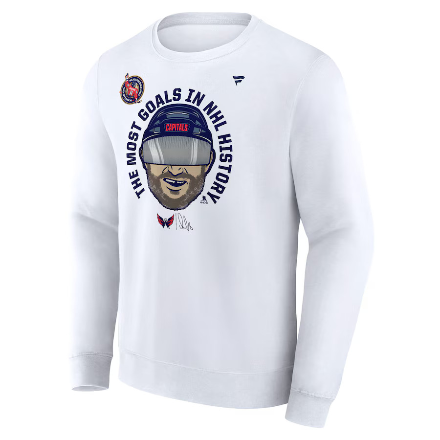 Produkt z limitované kolekce The GR8 Chase NHL All-Time Leading Goal Scorer k oslavě rekordu 895. gólu Alexe Ovechkina. Zakupte produkt Fanatics Pánská mikina Alex Ovechkin #8 Washington Capitals NHL The GR8 Chase Caricature Fleece Pullover Sweatshirt Velikost: M z kategorie KLUBY NHL | WASHINGTON CAPITALS od výrobce Fanatics za cenu 2099,00 Kč.