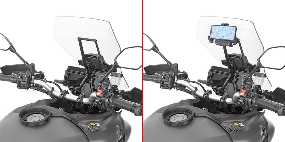 Držák (hrazdička) pro navigace nebo držák GIVI S 902A, S 920M, S920L a taštičky navigace řady S952B, S953B, S954B, S955B, S956B, S957B do kapotáže pod plexi. Průměr hrazdy je 12 mm, lze vhodně kombinovat např. s držákem telefonu Quadlock QLM-MIR-2. Nelze montovat na provedení Tracer 9 GT+.
