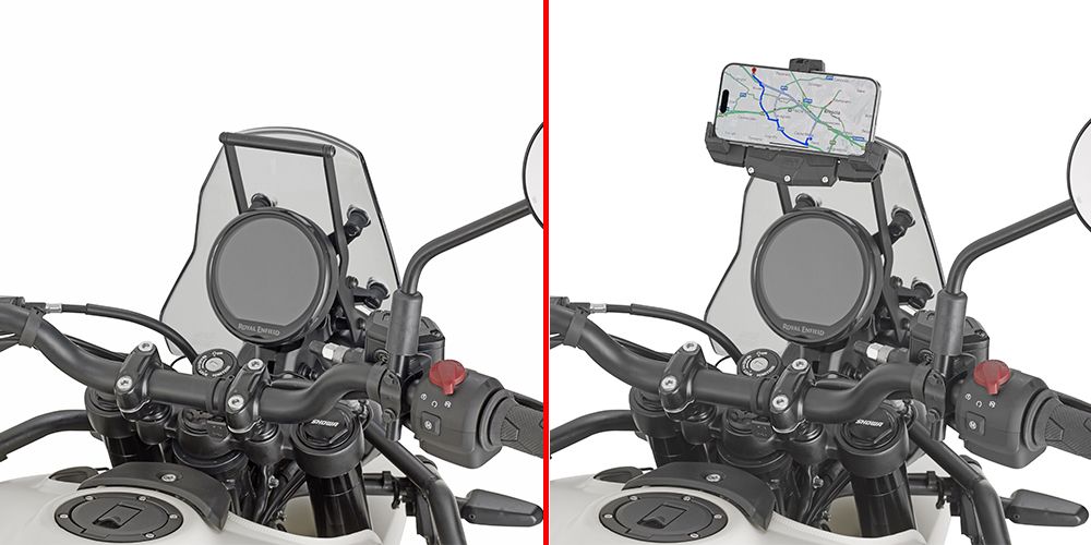 Držák (hrazdička) pro navigace nebo držák GIVI S 902A, S 920M, S920L a taštičky navigace řady S952B, S953B, S954B, S955B, S956B, S957B do kapotáže pod plexi. Průměr hrazdy je 12 mm, lze vhodně kombinovat např. s držákem telefonu Quadlock QLM-MIR-2. Ilustrační foto.