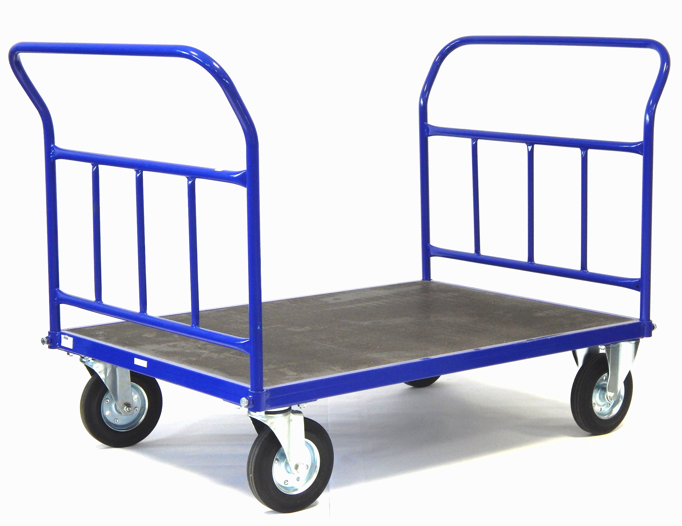 Přepravní (plošinový) vozík PVV je vhodný pro snadnou přepravu břemene na vodorovné plošině.Jízdu vozíku zajišťují dvě pevná a dvě otočná kola pro snadnou manipulaci. Výběr je ze tří druhů kol : 1. samonosná (pryžová) průměr 200 mm, kovový disk s jehličkovým ložiskem. 2. bantamová (foukací) průměr 260 mm, kovový disk s jehličkovým ložiskem. 3. samonosná AlG (pryžová), hliníkový disk s kuličkovým ložiskem - u těchto kol je nosnost vozíku 600 kg. Rozměr vozíku je 1200 x 8000 mm. Vozíky PVV jsou vyráběny ve dvou různých velikostech plošiny, vždy s dvěma variantami opor - dvě čela nebo ohrádka.
