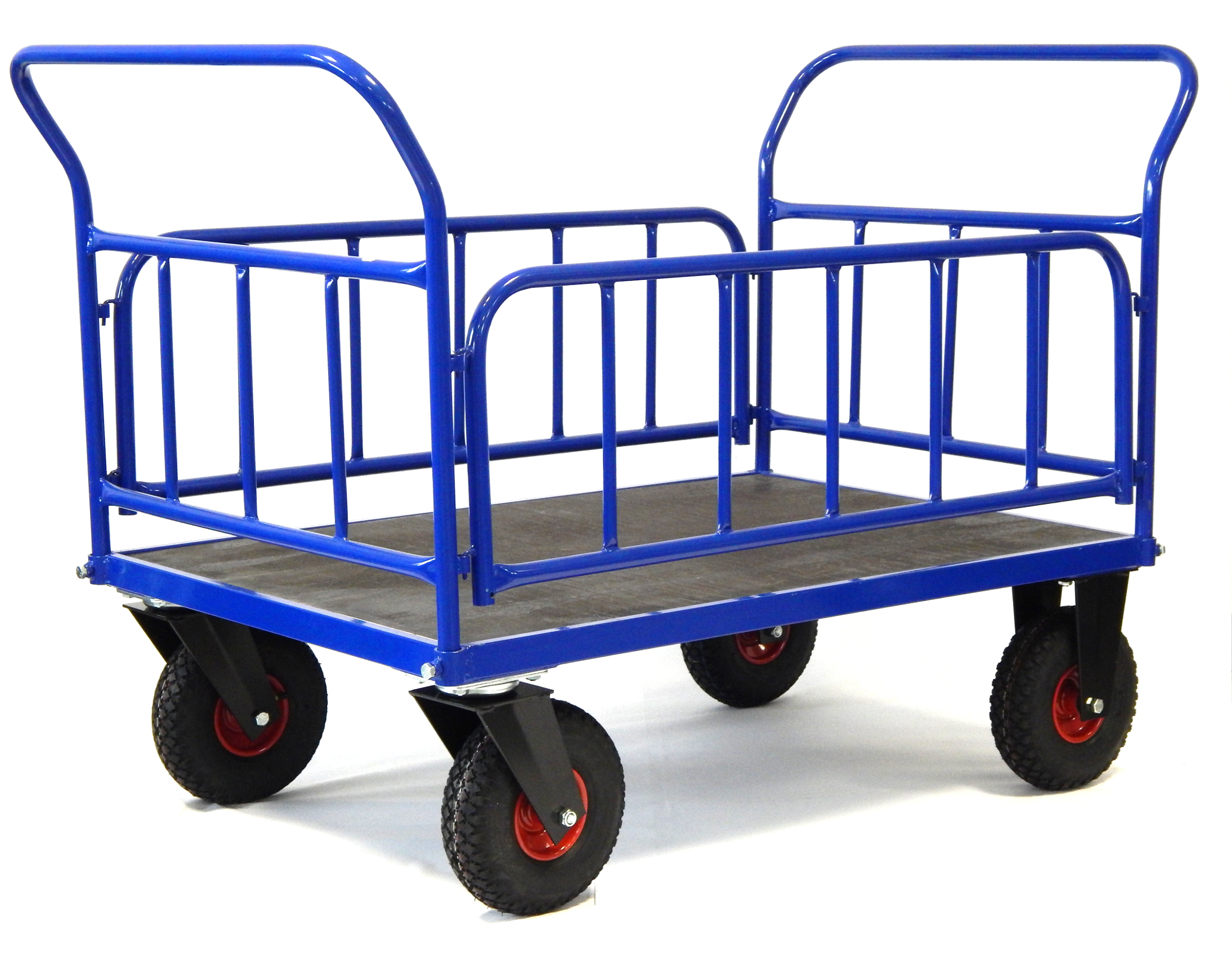 Přepravní (plošinový) vozík PVV je vhodný pro snadnou přepravu břemene na vodorovné plošině.Jízdu vozíku zajišťují dvě pevná a dvě otočná kola pro snadnou manipulaci. Výběr je ze tří druhů kol : 1. samonosná (pryžová) průměr 200 mm, kovový disk s jehličkovým ložiskem. 2. bantamová (foukací) průměr 260 mm, kovový disk s jehličkovým ložiskem. 3. samonosná AlG (pryžová), hliníkový disk s kuličkovým ložiskem - u těchto kol je nosnost vozíku 600 kg.  Rozměr vozíku je 1200 x 8000 mm. Vozíky PVV jsou vyráběny ve dvou různých velikostech plošiny, vždy s dvěma variantami opor - dvě čela nebo ohrádka.